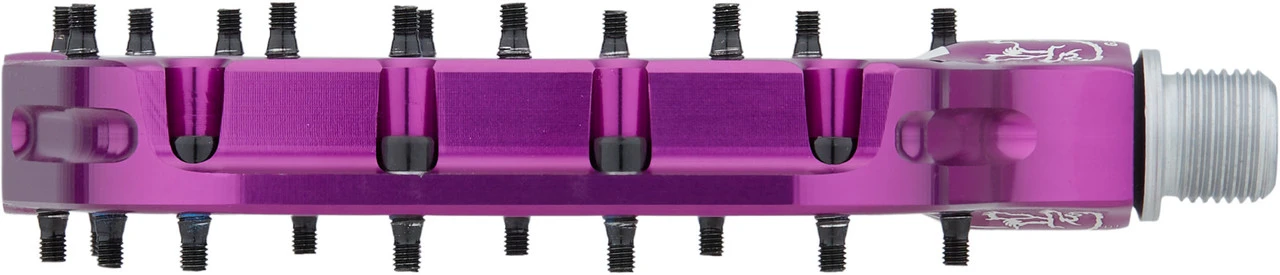 Die Dagga Plattformpedale besitzen die größte Plattform und breiteste Trittfläche im Chromag-Sortiment und bieten Dir somit viel Platz, um mit Hilfe der 24 höhenverstellbaren Pins sicheren Halt für Deine Füße zu finden. Die Pedaldicke beträgt in der Mitte 14,3 mm. Dagga kommt mit abgedichteten Lagern (außen) und einer Buchse (innen), die sich um eine robuste Chromoly Achse schmiegen.