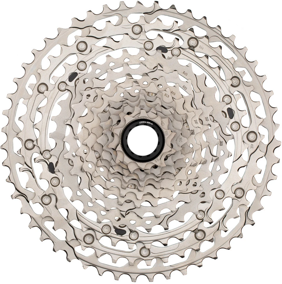 Schaltgriff:SL-M9100, SL-M8100, SL-M7100, SL-M6100, SW-M8150Schaltwerk:RD-M9100-SGS, RD-M8100-SGS, RD-M7100-SGS, RD-M6100-SGS, RD-M8150-12 (alle 1×12-fach)Kette:CN-M9100, CN-M8100, CN-M7100, CN-M6100Features:12-fach Hyperglide+ Kassette für schnelle, geschmeidige Gangwechsel, auch unter hoher Lastfür 1×12-fach10 Z-Ritzel als kleinstes Ritzel, möglich durch neuartige Freilauf-Konstruktion (Micro Spline)leichte, steife Beam-Spider-KonstruktionRitzel und Lockring plattiert, Ritzelträger lackiertTechnologien:Hyperglide+ / HG+